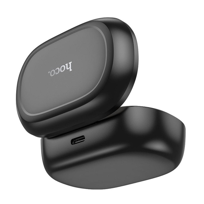 Hoco EQ8 TWS to czarne, bezprzewodowe słuchawki dokanałowe z Bluetooth 5.3, oferujące nowoczesny design, wysoką jakość dźwięku oraz komfort użytkowania dzięki ergonomicznej konstrukcji z zaczepem na ucho i funkcjom automatycznego parowania.