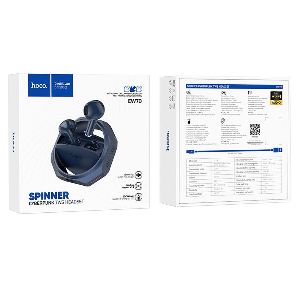 Hoco EW70 to bezprzewodowe słuchawki TWS, które łączą nowoczesny design z doskonałą jakością dźwięku. Ich wyjątkowy granatowy odcień nadaje im futurystycznego charakteru, a ergonomiczna konstrukcja zapewnia maksymalny komfort noszenia. Dzięki technologii Bluetooth 5.4, długiemu czasowi pracy i dotykowemu sterowaniu, są idealnym wyborem dla osób ceniących wygodę, jakość i niezawodność.